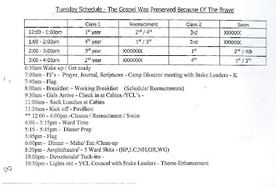 The girls at camp need a schedule. There was so much going on they needed to know where to be when. We came up with this one with a little help from